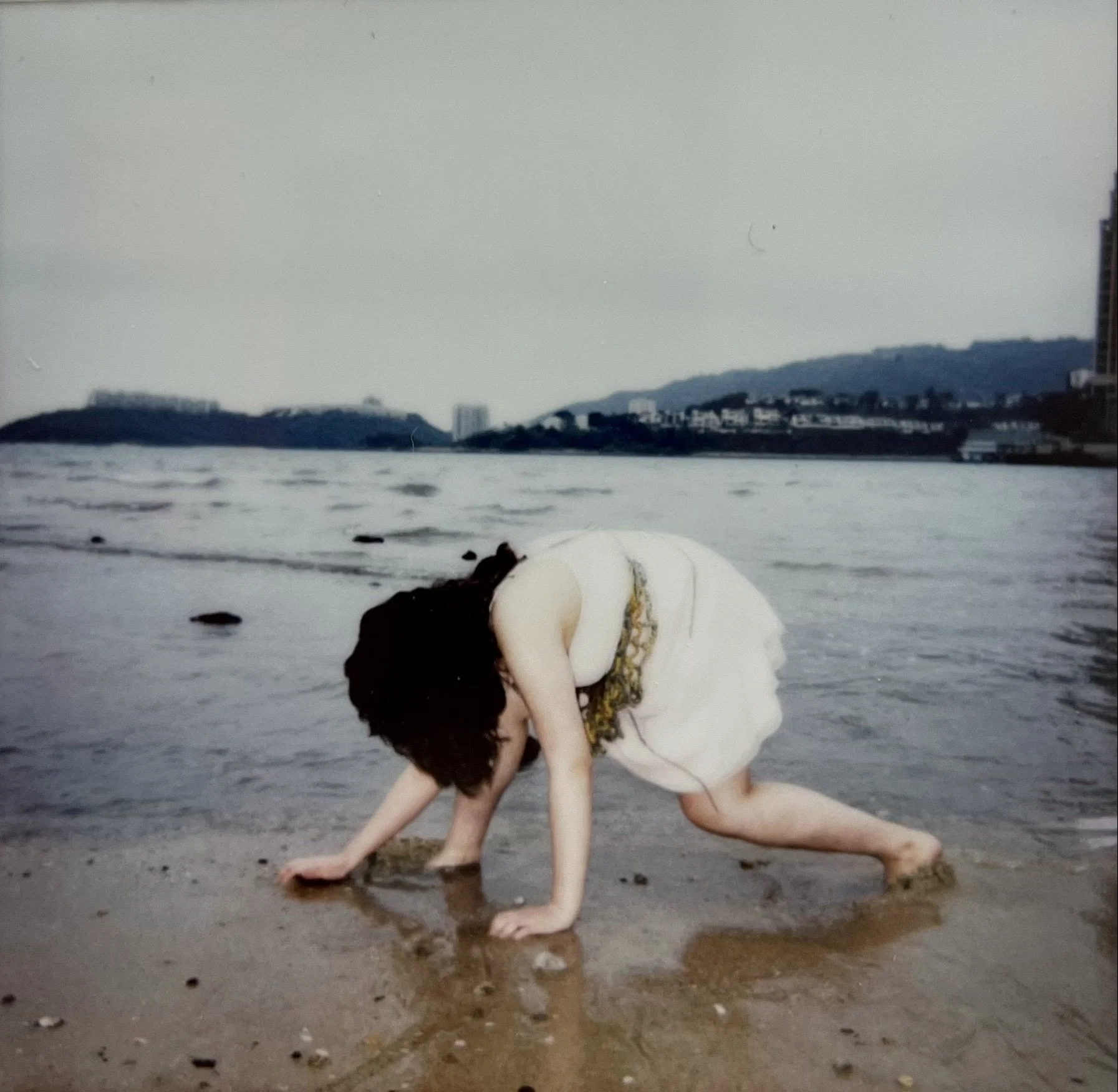 Making a Nest (stills), Photograph stills of a performance in which an 'inhabitant' gathers found objects and makes a nest on a beach, 2023
